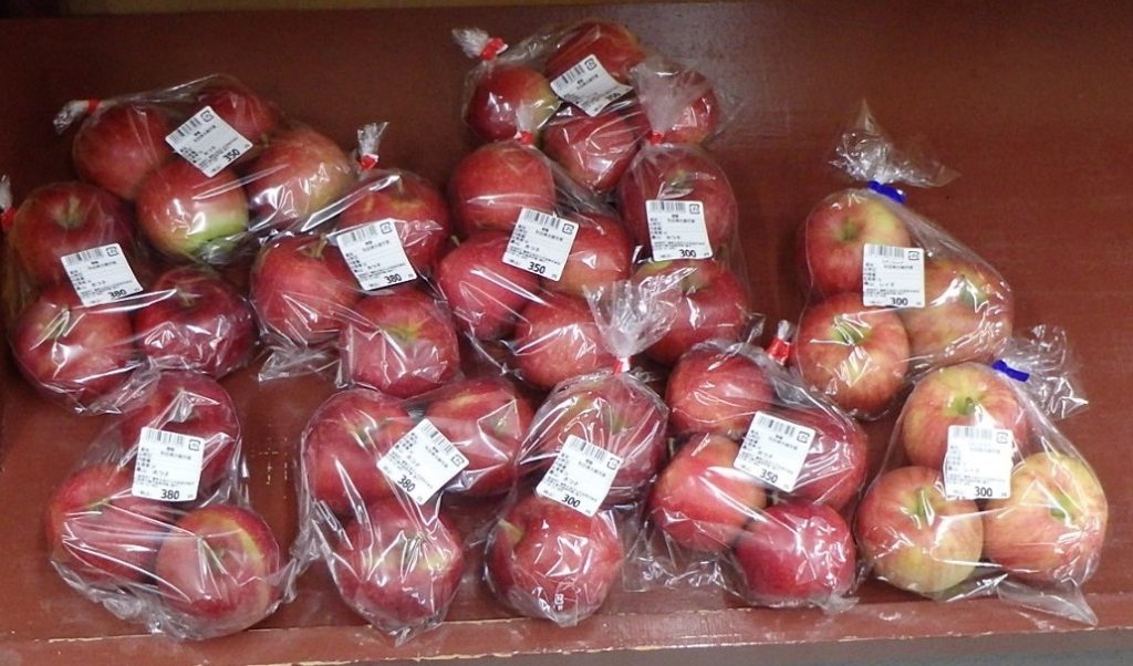 大館市曲田地区は果物の産地で、秋になると多くのりんごと梨が店頭に並びます。