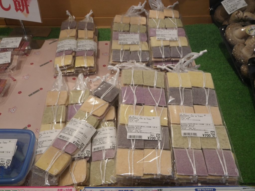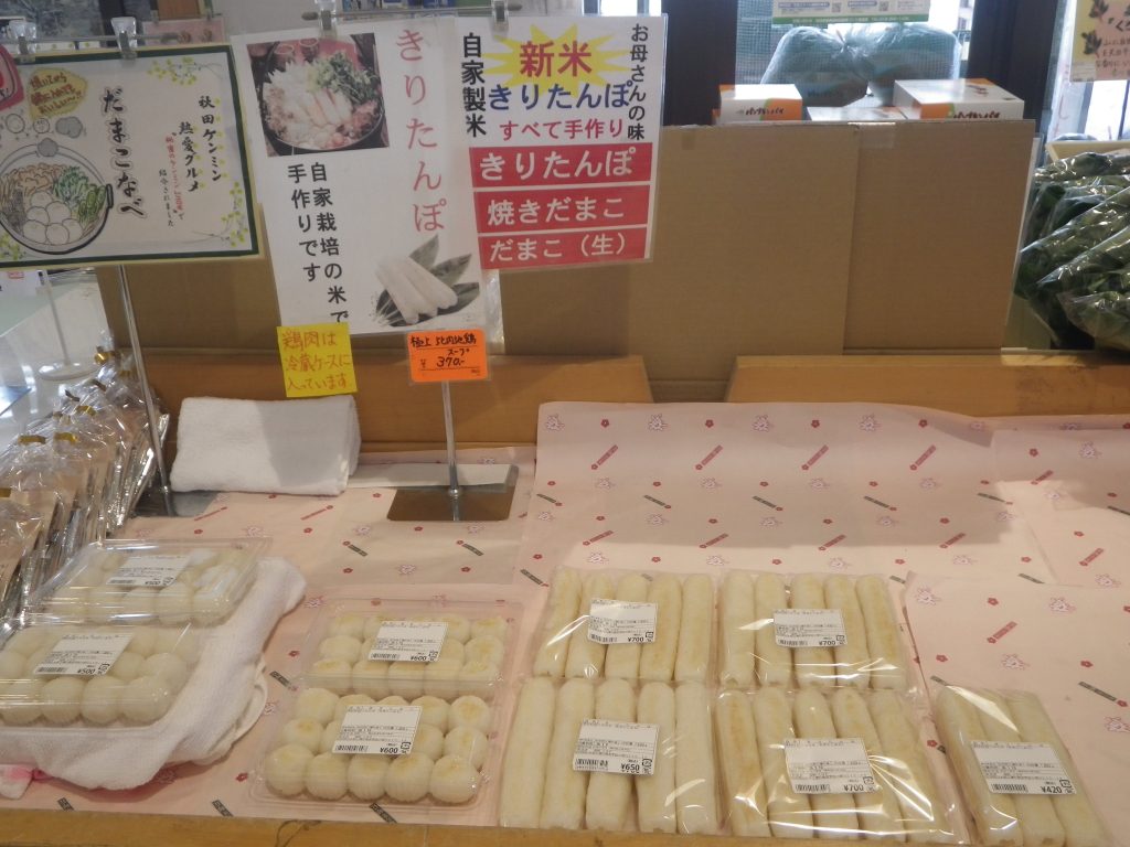 加工品では、定番のきりたんぽ・焼きだまこのほか、色鮮やかな干し餅も大好評です。人工の発色料等を使わず、地元で採れた野菜や果実などを使って色を出しています。この干し餅を揚げた「揚げ干し餅」も人気とのこと。