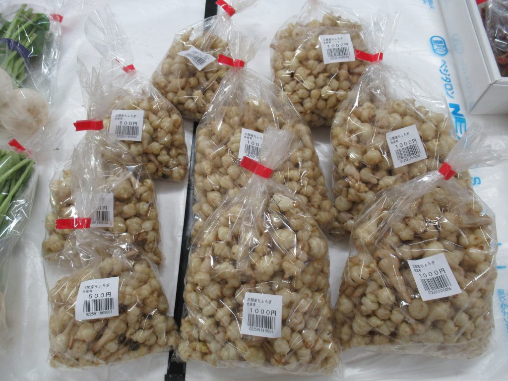 野菜コーナーでは、ねぎ、大根、いものこといった旬の野菜のほか、湯沢市の伝統野菜「ちょろぎ」も販売中です。毎年11月下旬に収穫を迎える「ちょろぎ」は、サクサクとした歯触りを活かして梅しそ漬けなどの漬物に。「長老木」、「千代呂木」などの縁起の良い字があてられる縁起物食材で、正月料理として親しまれています。