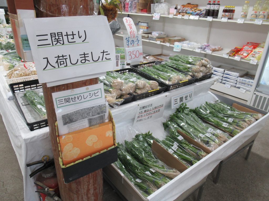 また、三関地区の伝統野菜の「関口なす」や秋の味覚の「いものこ」などを販売しているほか、10月2日からは「三関せり」が入荷しました。数に限りがあるため、ぜひお早めにお越しください。なお、10月から営業時間が9時~15時に変更になっていますので、ご来店の際はご注意ください。
