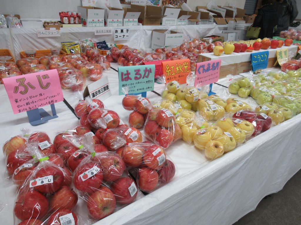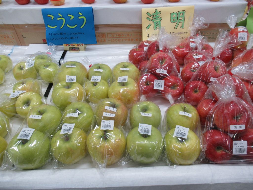 果物コーナーでは、「ふじ」「はるか」「ぐんま名月」「こうこう」などの晩生種のりんごのほか、甘柿、渋柿をそれぞれ販売しています。