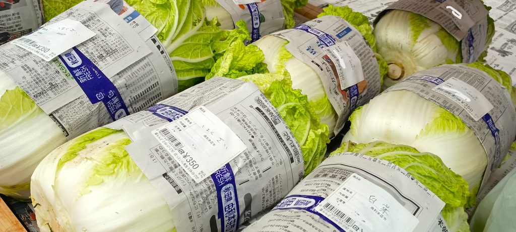 冬の季節となり、お店から見える鳥海山は雪でどんどん真っ白になっています。そして、店内には大根や白菜など冬らしい野菜が続々と並び始めています。