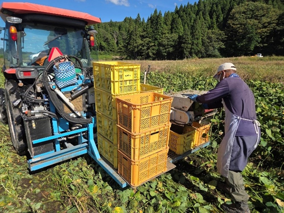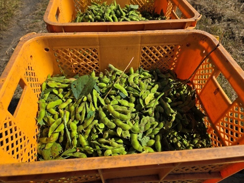 えだまめの収穫適期は5日ほどしかありません。品質が悪くなる前に、時期を見極めて作業を行います。今年の収穫は9月24日に始まりました。