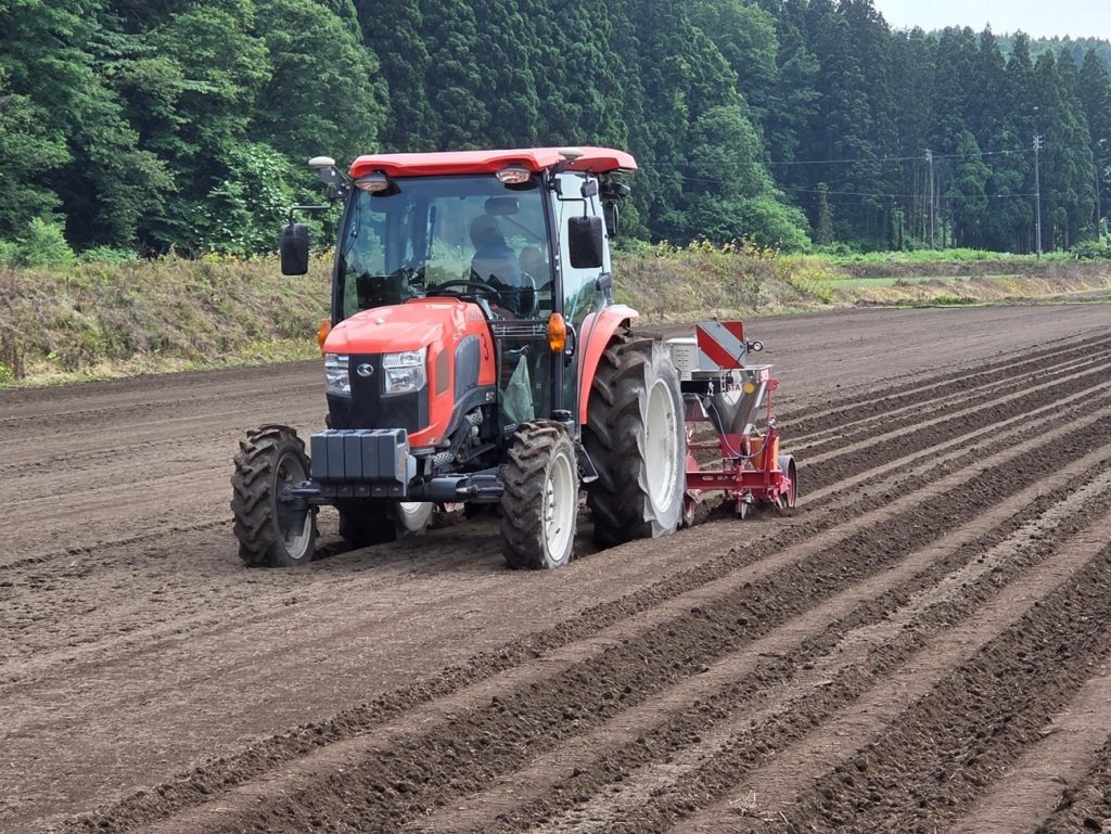 乾燥や水分過多は発芽に大きく影響するため、適度な湿度になる時期を選んで播種します。今年は6月10日に播種が行われました。播種作業は、およそ4haで丸一日かかります。