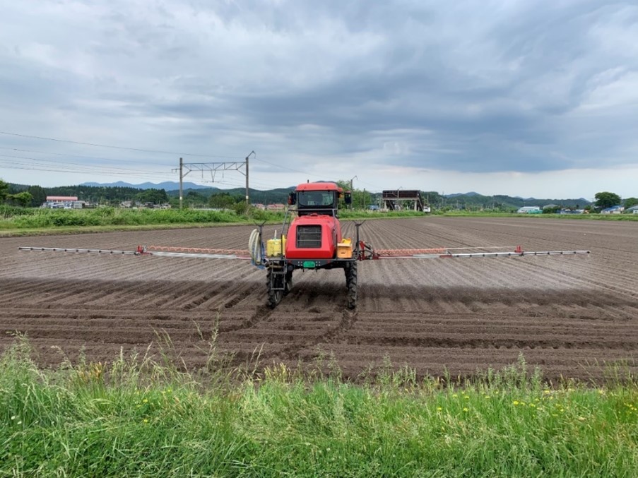 風味豊かなえだまめを作るには、葉を病気や虫から守り、十分に光合成ができるようにすることが大切です。大規模法人では、ブームスプレイヤーやドローンを使ってこまめに防除作業を行います。