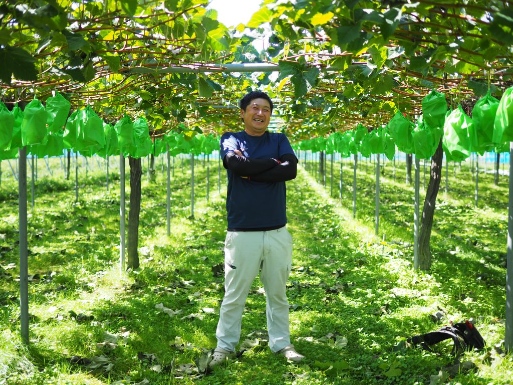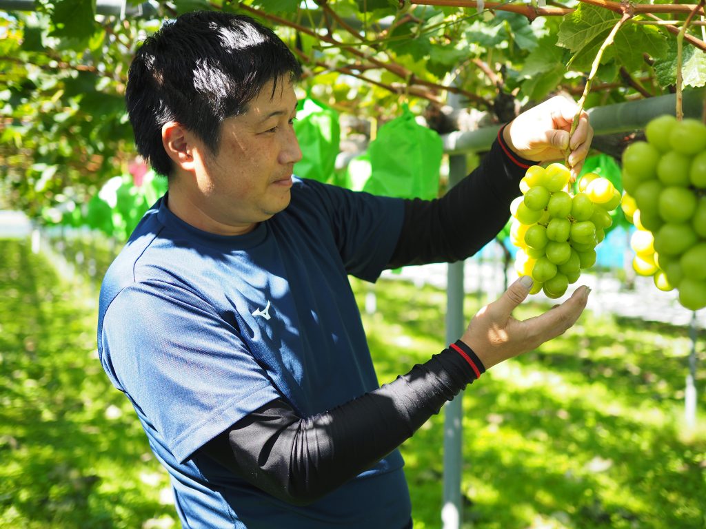県の未来農業フロンティア育成研修修了生で、仁賀保地区でいち早く種なし大粒ぶどう栽培に取り組むJA秋田しんせいぶどう研究会の横山雄祐会長は、「由利地域から他産地に負けない品質のぶどうを届けたい」と言います。